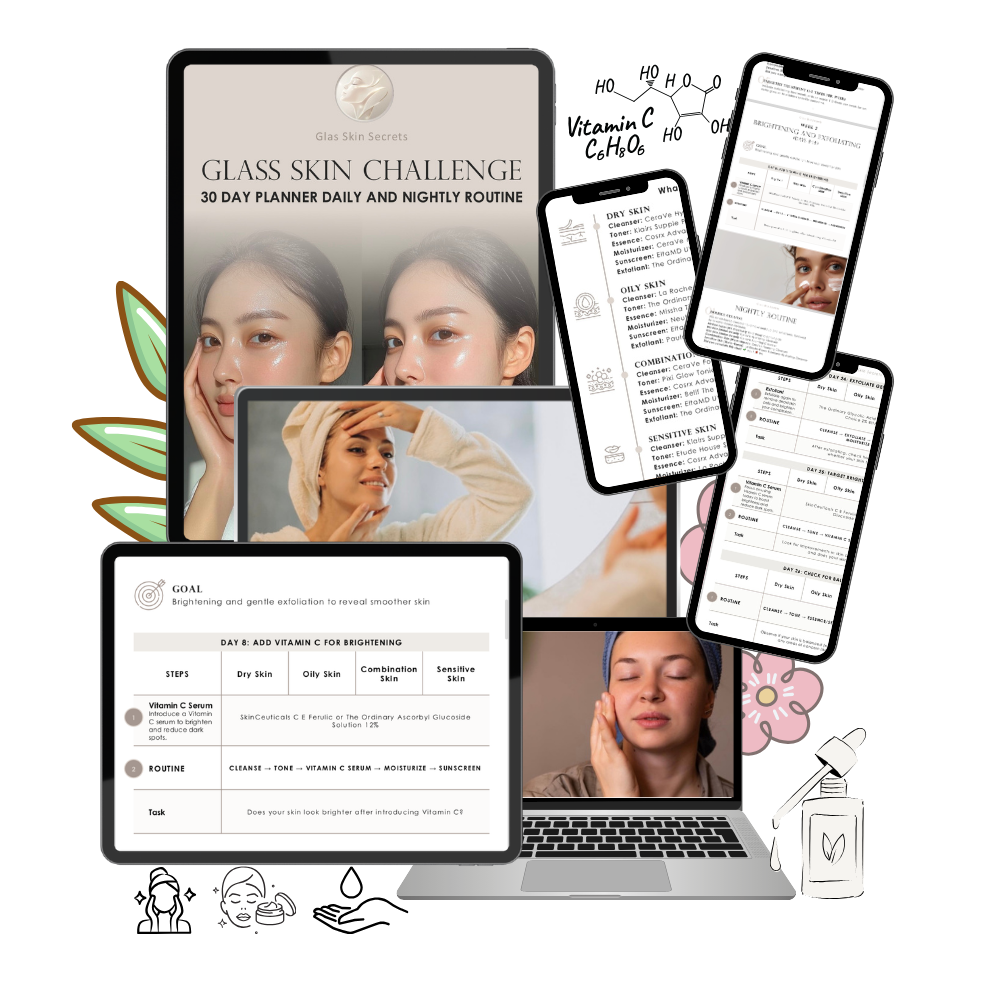 Transform your skin with our step-by-step routines and personalized skincare solutions. Whether you're tackling dryness, acne, sensitivity, or signs of aging, our 30-Day Glass Skin Challenge will help you achieve smooth, glowing, glass-like skin.